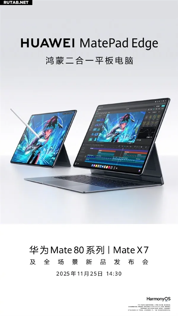 Официальный релиз планшета Huawei MatePad Edge состоится 25 ноября. Устройство позиционируется как первый планшет-трансформер на базе HarmonyOS.