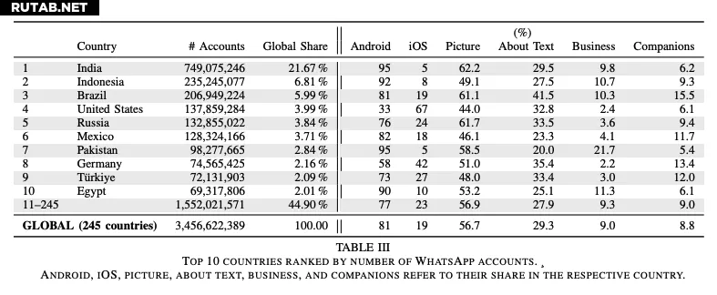Исследователи собрали данные 3,5 миллиарда пользователей WhatsApp