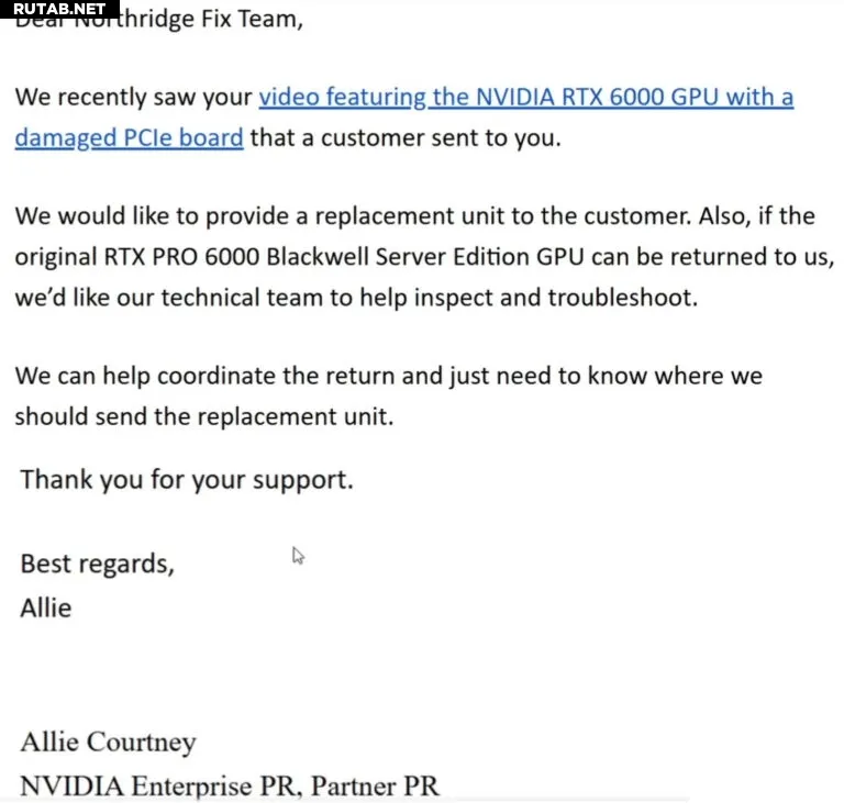К счастью, NorthbridgeFix подтвердил, что NVIDIA согласилась предоставить владельцам RTX PRO 6000 замену видеокарт, что соответствует практике рассмотрения предыдущих случаев повреждения RTX 5090 FE.