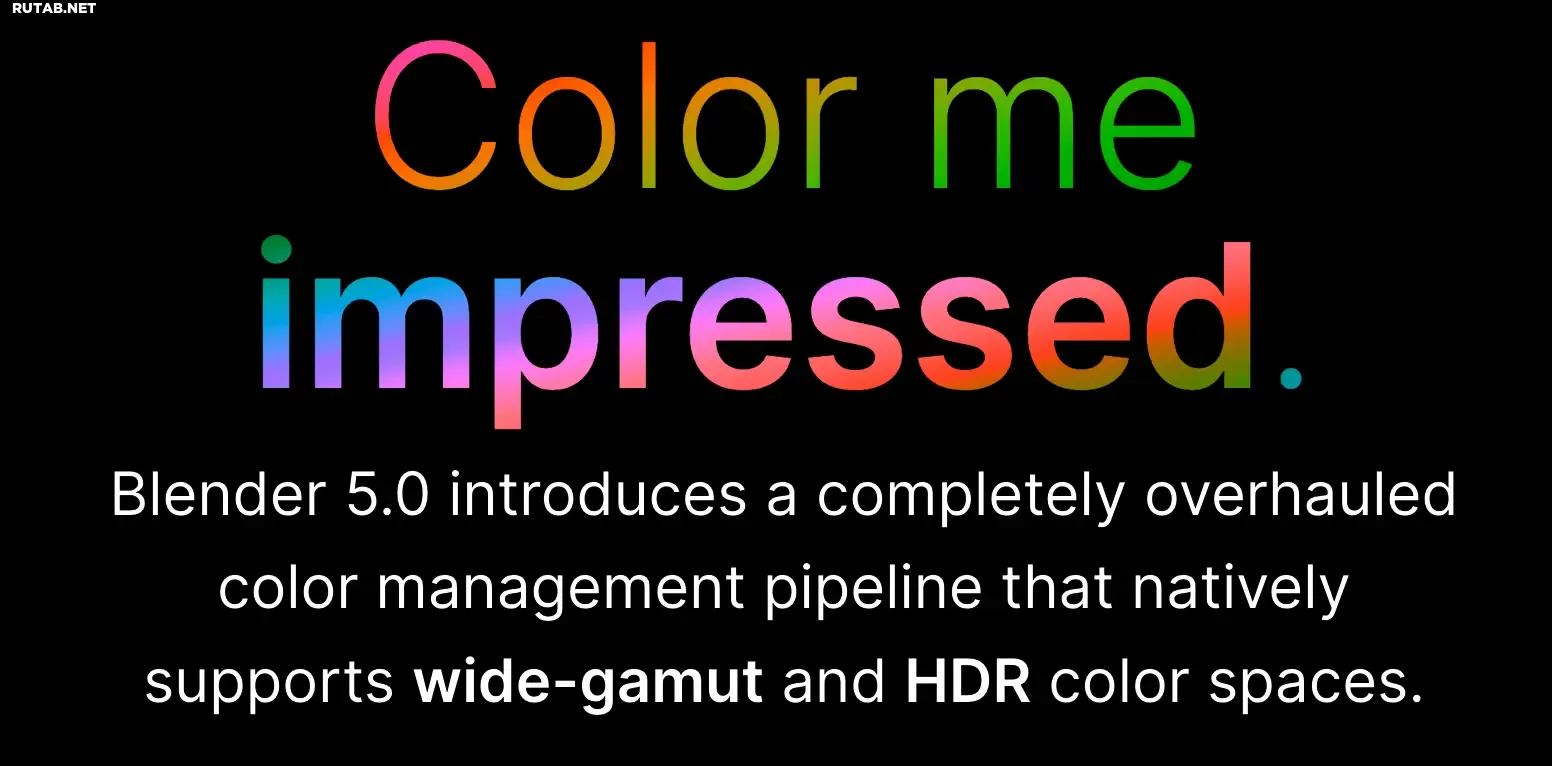 Ключевым нововведением Blender 5.0 стала новая система управления цветом с нативной поддержкой широкого цветового охвата и HDR-изображений. В редактор добавлены рабочие пространства ACEScg и линейный Rec.2020, а также новые режимы просмотра AgX HDR и ACES, что соответствует требованиям профессиональных производственных пайплайнов.