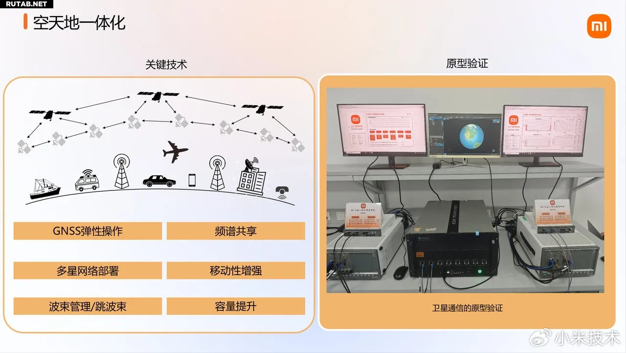 Для интегрированных космических и наземных сетей Xiaomi описала такие технические направления, как развертывание многоспутниковых сетей, совместимость с терминалами со слабым или отсутствующим GNSS, усиление покрытия. Также была представлена платформа для прототипирования спутниковой связи на основе имитатора каналов.