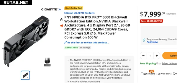 Флагманская профессиональная видеокарта NVIDIA RTX PRO 6000 Blackwell, которая изначально стоила 9299 долларов (в некоторых каналах продавалась более чем за 11000 долларов), теперь подешевела до 7999 долларов. Снижение цены составило 14%.