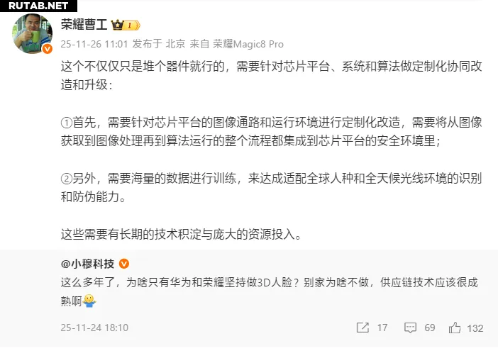 Инженер по разработке Honor под ником «Инженер Цао из Honor» сегодня ответил на вопросы пользователей, объяснив, что это не просто вопрос установки дополнительного компонента — требуется кастомизация и адаптация чипсетов, систем и алгоритмов: