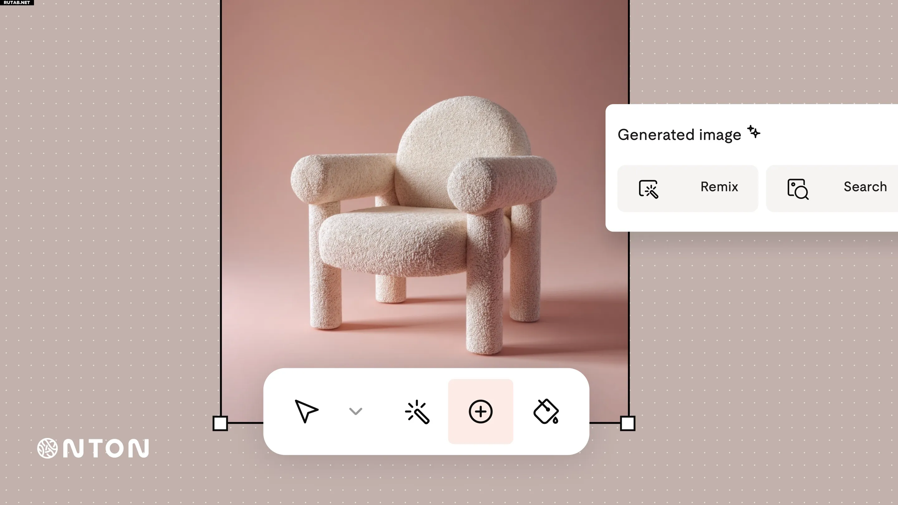 Onton также предлагает бесконечное полотно с генерацией изображений, где можно добавлять существующие фото вместе с найденными товарами для идей. Можно даже загрузить изображение комнаты и попросить инструмент обставить ее мебелью.
