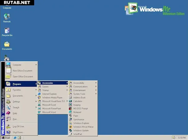 Microsoft выпустила Windows Millennium Edition (ME) в 2000 году, но дизайн меню «Пуск» не претерпел значительных изменений. Единственным отличием от версии 98 было название операционной системы сбоку.