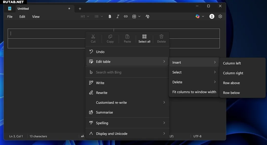 В Windows 11 тестируют функцию создания таблиц в «Блокноте»