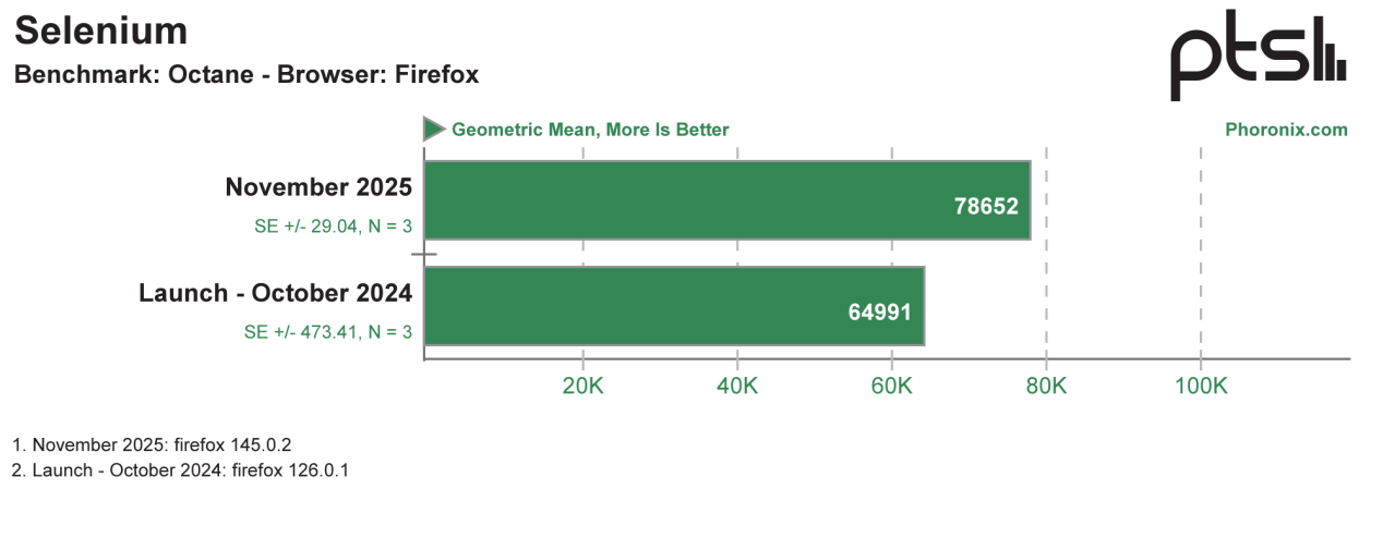 Все изменения касались исключительно программной части: система была обновлена с Ubuntu 24.04 LTS до Ubuntu 25.10, а также использовалось ядро Linux 6.18 Git.