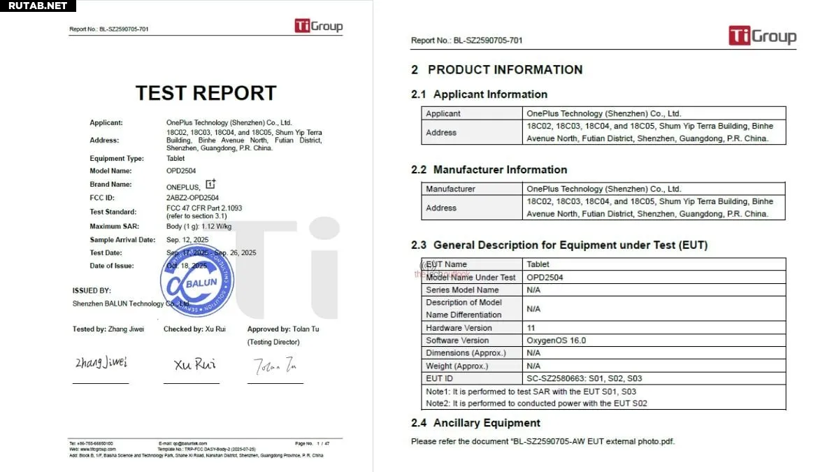 Планшет OnePlus Pad Go 2 был замечен на сайте Федеральной комиссии по связи США (FCC), что подтверждает его скорый запуск на американском рынке и раскрывает несколько важных деталей. Как сообщает ресурс TheTechOutlook, устройство фигурирует под моделью OPD2504 и идентификатором FCC 2ABZ2-OPD2504. В списке указано, что планшет работает на оболочке OxygenOS 16, основанной на Android 16, а его аппаратная версия обозначена как 11.