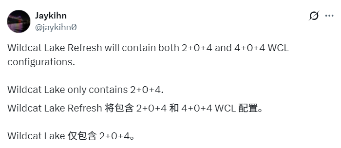 Jaykihn не уточнил детали графического процессора. Учитывая, что оригинальный Wildcat Lake ожидается в первой половине 2026 года, выход обновлённой версии Wildcat Lake Refresh может состояться не раньше первого или второго квартала 2027 года.