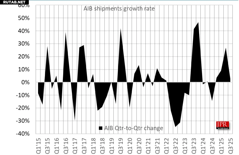 В отчете указывается, что в третьем квартале 2025 года было отгружено 12.02 миллиона дискретных видеокарт на общую сумму 88 миллиардов долларов США (~7 трлн руб.). Это на 2.8% больше, чем в предыдущем квартале.