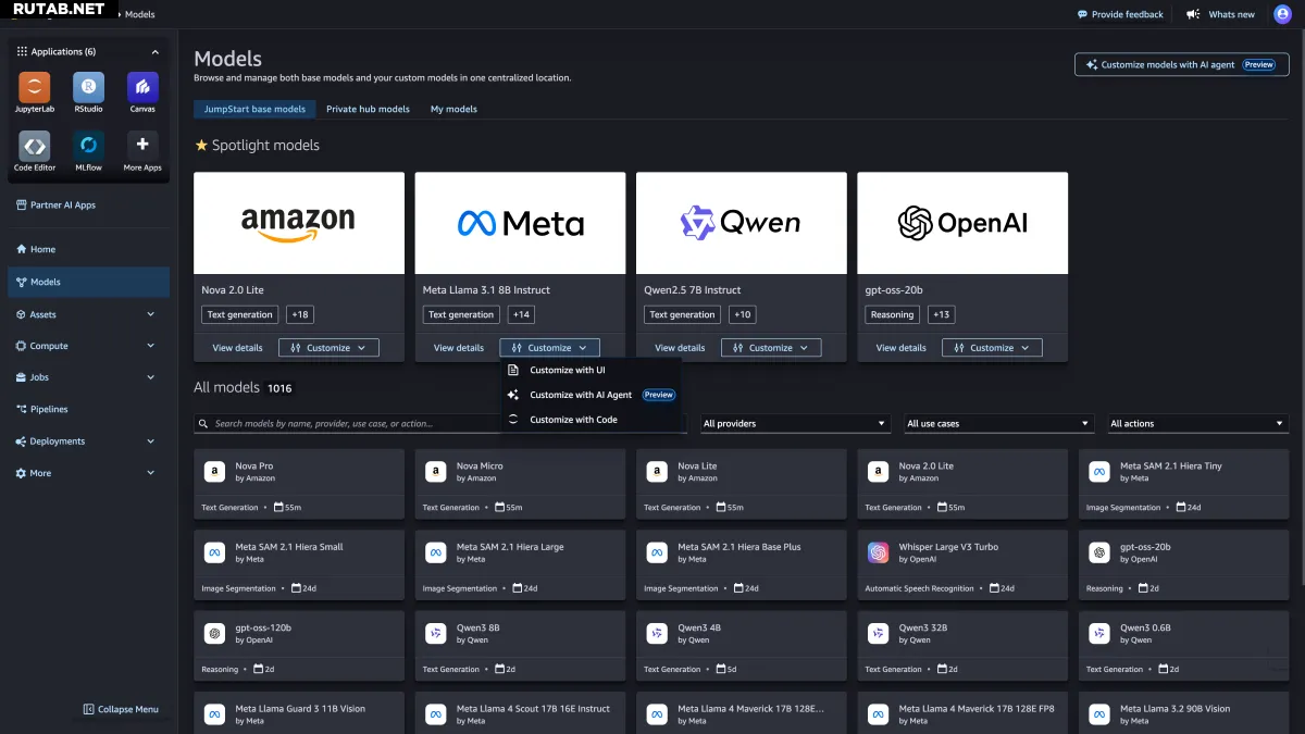 Эта возможность доступна для кастомизации собственных моделей Nova от Amazon и некоторых моделей с открытым исходным кодом (тех, у которых общедоступны веса модели), включая DeepSeek и Llama от Meta.