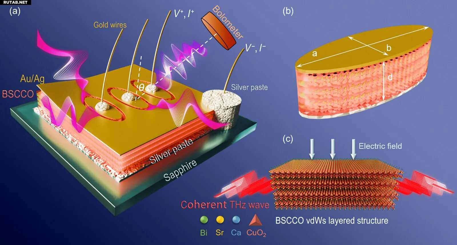 Оно изготовлено из высокотемпературного сверхпроводника, состоящего из атомарно тонких слоёв, которые устойчивы к воздействию воздуха и влаги. Внутри устройства находятся крошечные эллиптические резонаторы со свойствами джозефсоновских переходов. Они позволяют генерировать и передавать когерентные терагерцовые волны в широком диапазоне частот — от 100 ГГц до 1 ТГц.