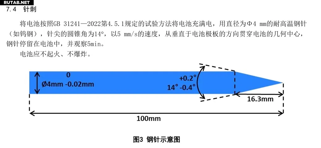 Испытания стали более жёсткими и теперь сопоставимы со стандартами для аккумуляторов электромобилей. Элемент должен выдерживать прокалывание стальной иглой без возгорания, термическую нагрузку при 135 °C в течение часа, а также испытания на экструзию и циклическое литирование.