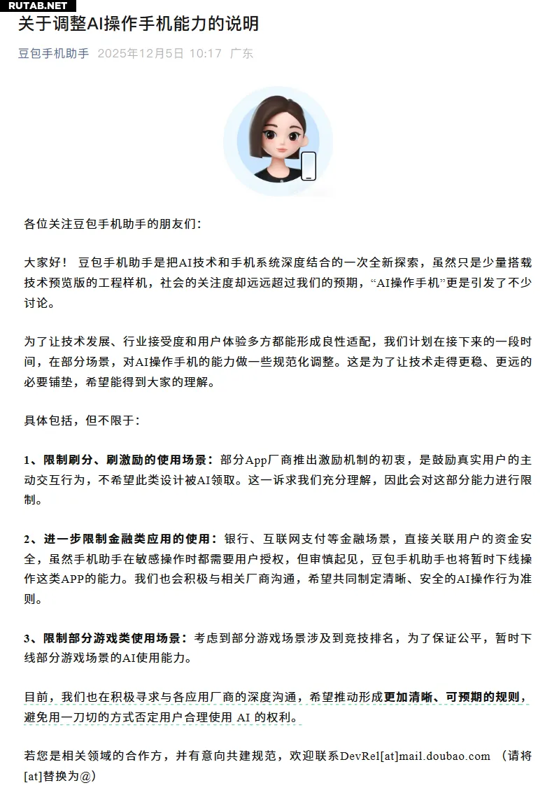 Разработчики ИИ-помощника «Доубао» (Doubao) для смартфонов, созданного в сотрудничестве компаний ByteDance и ZTE, объявили о корректировке функционала. Решение связано с критикой, возникшей после публикации пользовательских тестов, и реакцией некоторых сервисов.