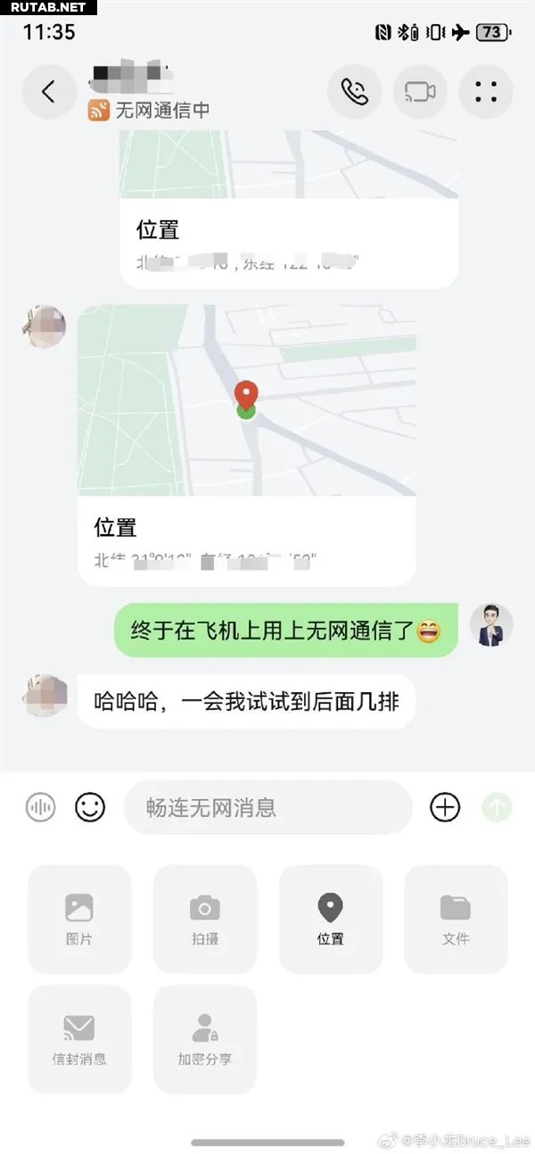 Сегодня технический директор подразделения потребительских устройств Huawei (Huawei Consumer BG) Ли Сяолун в своём микроблоге поделился результатами тестирования функции связи без сотовой сети. Он отметил, что из-за отличного покрытия наземных операторов в Китае у него раньше не было возможности её опробовать.