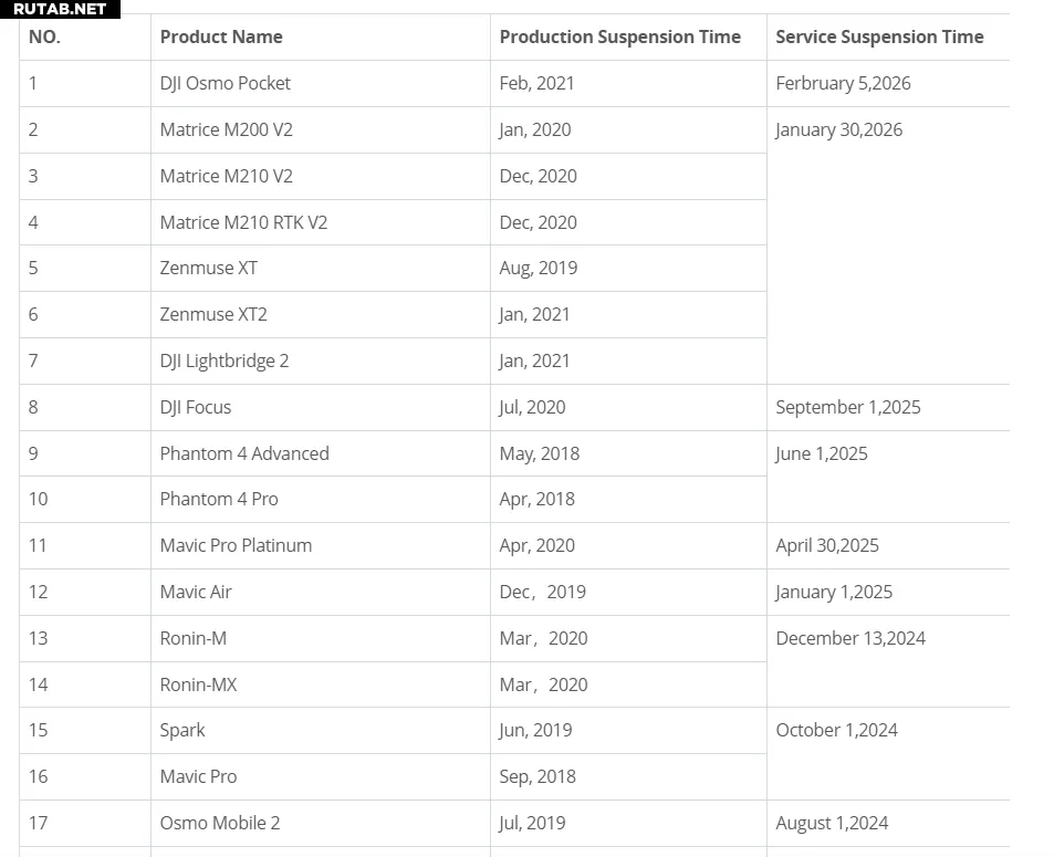Компания DJI значительно расширила список продуктов, которые больше не получают официальной поддержки. В него вошли 111 устройств, которые либо уже достигли конца жизненного цикла, либо достигнут его в ближайшее время.