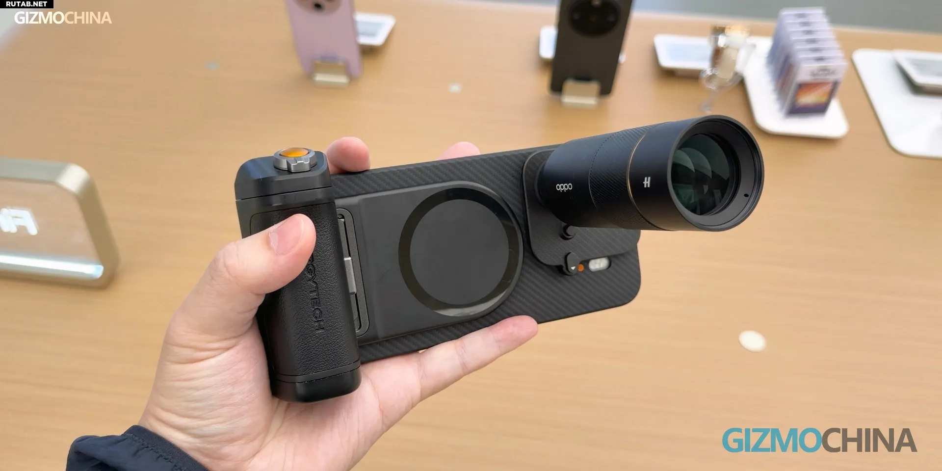 Рукоятка быстро отсоединяется, поддерживает вертикальную съемку и даже беспроводную зарядку. Оранжевая кнопка спуска и крышка объектива с логотипом «H» подчеркивают коллаборацию OPPO и Hasselblad.