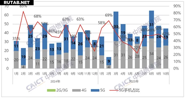Эта тенденция сохраняется и в годовом отчёте: с января по октябрь 2025 года в стране было представлено 443 новые модели смартфонов, что на 19,4% больше, чем за аналогичный период прошлого года. При этом 5G-моделей было всего 199, что на 2,5% меньше, и они составили лишь 44,9% от общего числа новинок.