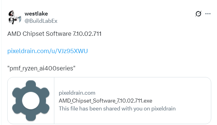 Как сообщает инсайдер BuildLabEx, в драйвере набора микросхем AMD версии 7.10.02.711 впервые появились идентификаторы, относящиеся к линейке Ryzen AI 400. Хотя этот драйвер пока не доступен для загрузки, его наличие служит подтверждением многочисленных слухов о новой серии, которая должна прийти на смену текущим APU Ryzen AI 300 "Strix Point".