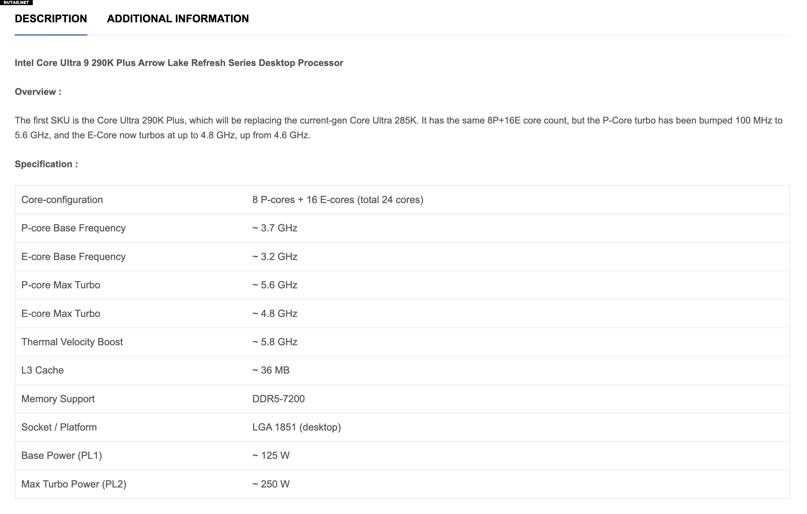 Более того, для 290K Plus указано больше спецификаций, чем для 270K Plus, что коррелирует с большим объемом информации о нем в сети на данный момент. Оба процессора значатся как 24-ядерные решения с конфигурацией 8 производительных ядер (P-Core) и 16 энергоэффективных (E-Core). У 290K Plus заявлена максимальная частота 5,8 ГГц благодаря технологии Thermal Velocity Boost — на 100 МГц выше, чем у предшественника 285K. В списке для 270K Plus указана максимальная частота Turbo Boost Max 5,5 ГГц — такая же, как у текущей модели 265K.