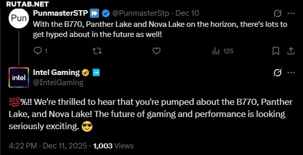 Несмотря на многочисленные слухи о возможной отмене карты или даже о сворачивании Intel бизнеса по производству дискретных игровых GPU, недавно появилось косвенное подтверждение её существования. Официальный аккаунт Intel Gaming в социальных сетях в порыве энтузиазма опубликовал сообщение, в котором говорилось, что пользователи в восторге от видеокарты B770. Пост был вскоре удалён, но скриншот успел разойтись по сети.