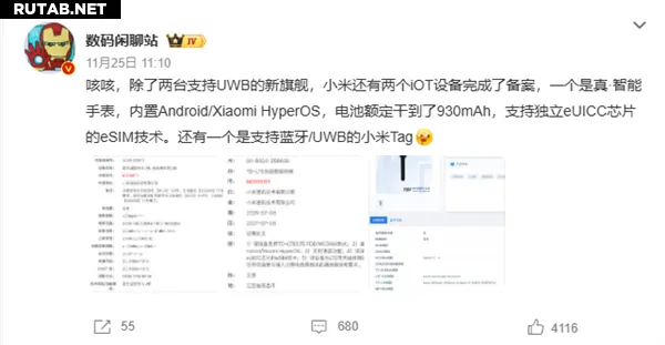 Что касается умных часов, то новинка будет работать на системе Android/Xiaomi HyperOS, получит аккумулятор ёмкостью 930 мА·ч и поддержку технологии eSIM на базе независимого чипа eUICC.