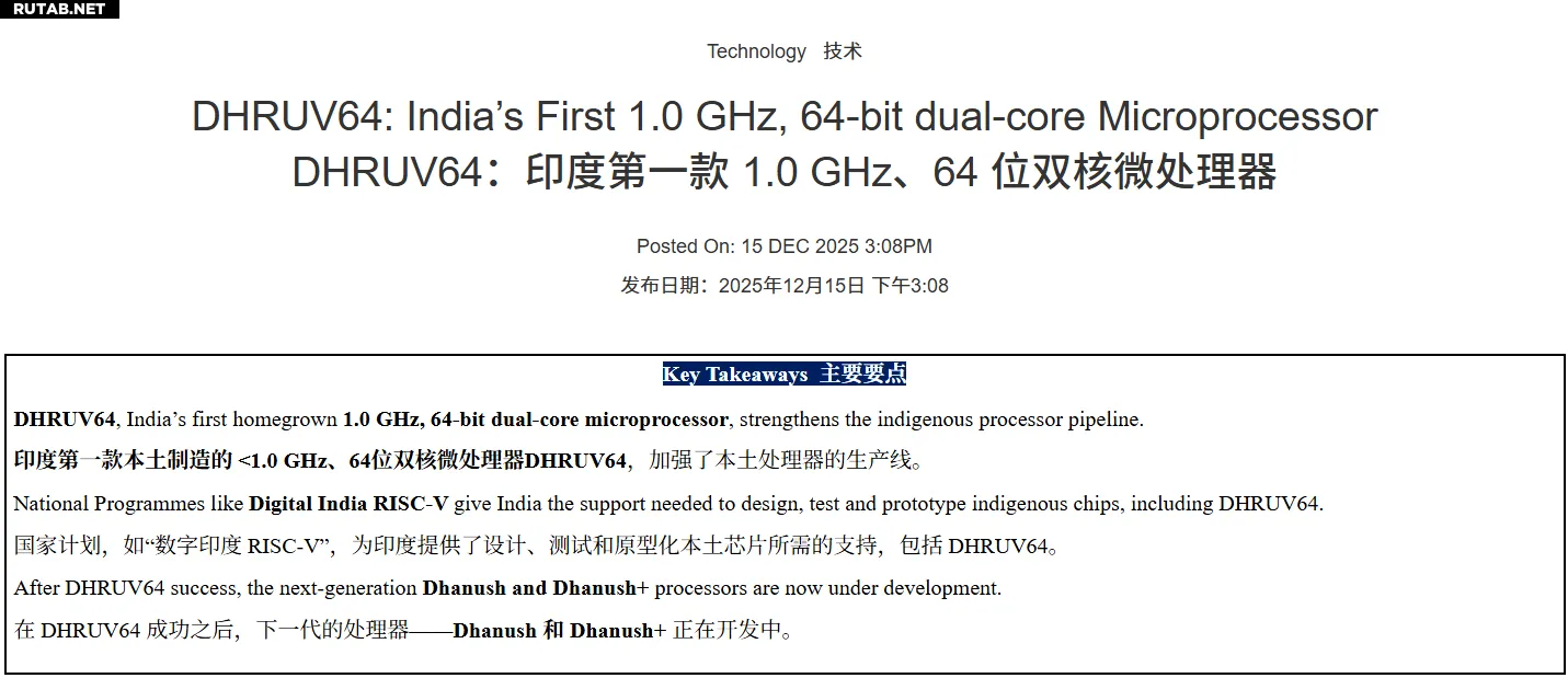 Индийское правительство объявило о важной вехе в развитии национальной полупроводниковой отрасли. 15 декабря был официально представлен первый полностью самостоятельно разработанный 64-битный микропроцессор DHRUV64.