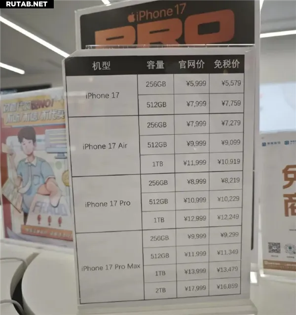 Согласно данным местных ритейлеров, новые iPhone 17 стали значительно доступнее. Например, модель iPhone 17 Pro Max с памятью 256 ГБ в беспошлинной зоне стоит 9299 юаней, что на 700 юаней дешевле официальной цены в 9999 юаней.