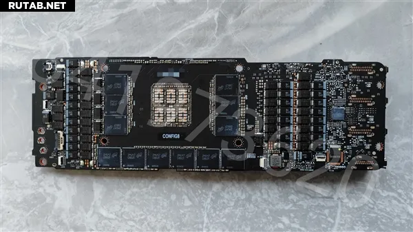 На лицевой и обратной стороне платы расположено по 12 чипов памяти GDDR6X, всего 24, что в сумме даёт 48 ГБ памяти с 384-битной шиной и пропускной способностью более 1 ТБ/с.