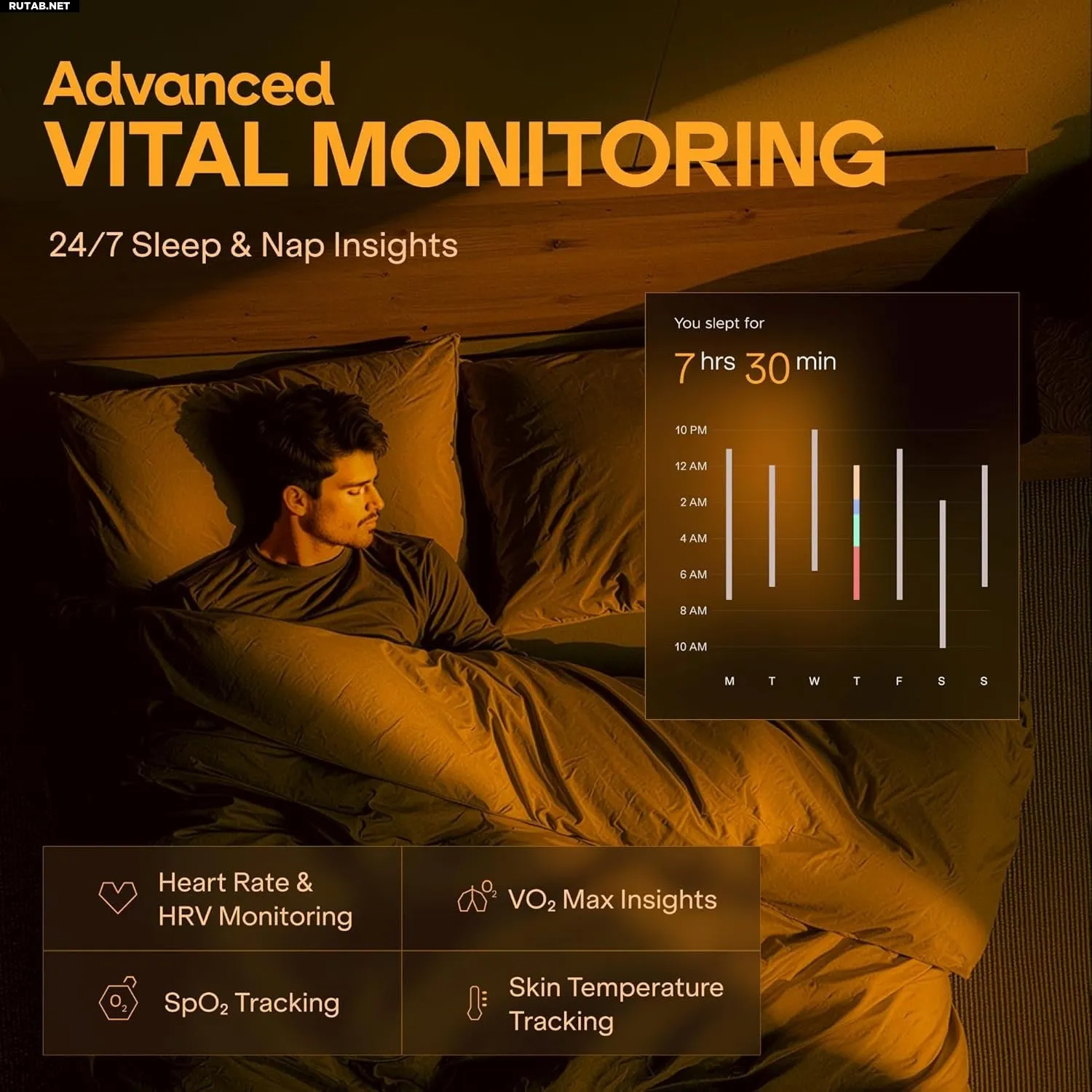 Главная функция кольца — мониторинг здоровья. Оно поддерживает круглосуточное отслеживание частоты сердечных сокращений, анализ вариабельности сердечного ритма (ВСР), измерение уровня кислорода в крови (SpO₂), подсчёт шагов и активности, мониторинг температуры кожи, отслеживание уровня стресса и оценку максимального потребления кислорода (VO₂ Max) через приложение boAt Crest. Функция отслеживания сна включает подробный анализ его фаз, а также обнаружение дневного сна. Кольцо поддерживает более 40 спортивных режимов, включая бег, езду на велосипеде, силовые тренировки и ходьбу. Приложение Crest получило обновлённый, более простой интерфейс. В комплекте с кольцом предлагается пакет медицинских услуг стоимостью ~5000 руб.