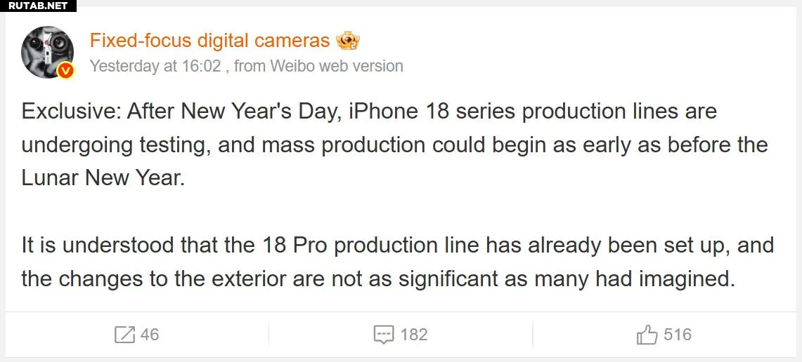 Почему Apple так торопится? Источники предполагают, что изменения во внешнем дизайне iPhone 18 будут косметическими по сравнению с семнадцатой моделью, которая представила новую эстетику. Меньшее количество конструктивных изменений облегчает более быстрое развёртывание производственного процесса. Тем не менее, за кулисами говорят об экспериментах со слегка прозрачными задними панелями корпуса и отказе от двухцветной окраски.