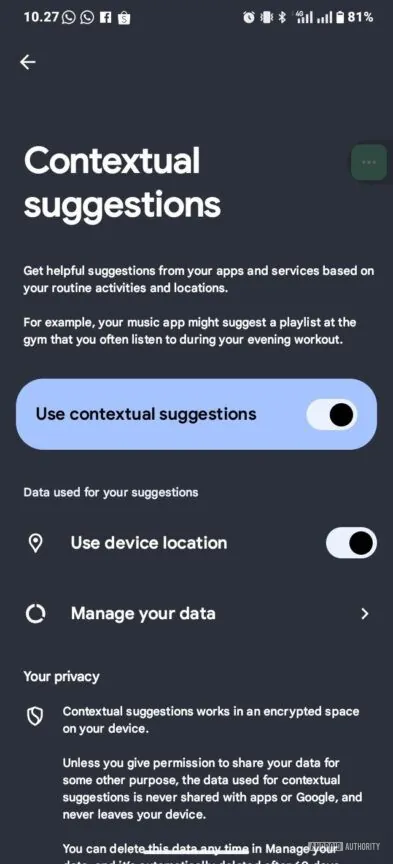 Google заверяет, что приватность пользователей защищена. Вся обработка данных происходит локально в зашифрованном пространстве, и информация не покидает телефон, если только пользователь сам не решит её отправить, например, в отчёте об ошибке. Данные автоматически удаляются через 60 дней, хотя это можно сделать и раньше через опцию «Управление данными». Функцию также можно полностью отключить.