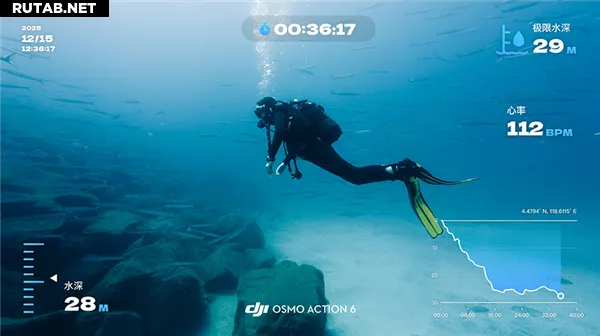 Для любителей дайвинга на приборную панель добавлены функции «График глубины» и «Индикатор максимальной глубины», которые можно применять как к обычному, так и к панорамному видео. После импорта материала с данными о глубине можно наглядно отобразить траекторию погружения, максимальную глубину и другую информацию, комбинируя её с данными о пульсе, координатами и т.д.