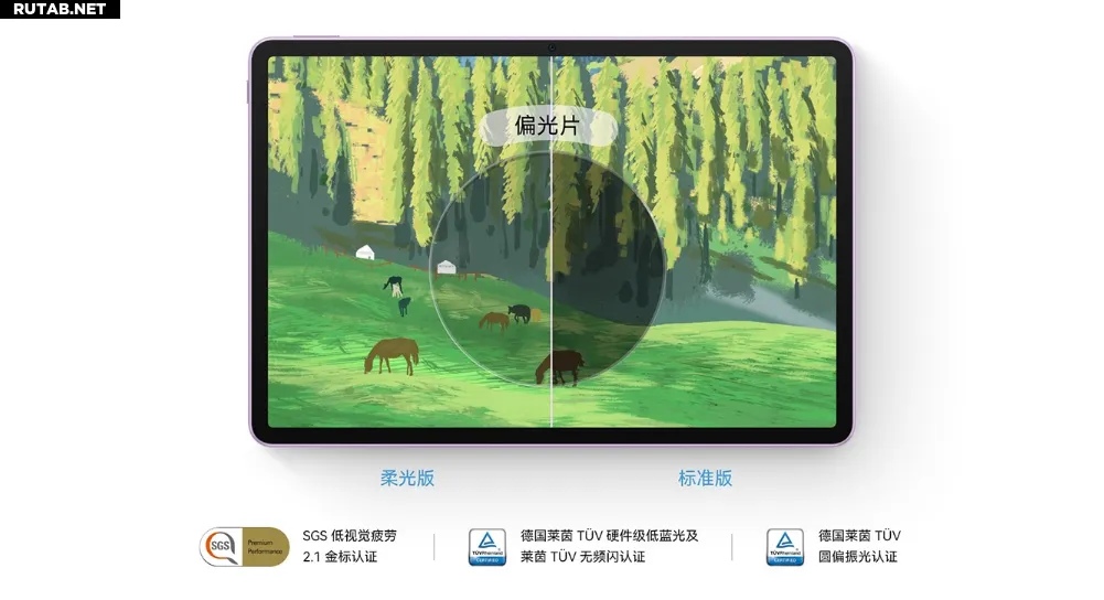 Ключевой особенностью обновления стал новый 11,5-дюймовый экран с разрешением 2456×1600 пикселей и частотой обновления 120 Гц. В нём используется технология круговой поляризации света, которая преобразует линейно поляризованный свет от дисплея в более равномерный круговой, имитируя естественное освещение для снижения нагрузки на глаза.