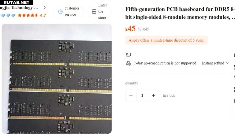Чтобы упростить процесс, автор проекта заказал на китайском маркетплейсе Taobao пустые печатные платы (PCB) для DDR5 с уже нанесёнными дорожками. Отдельно были приобретены чипы памяти (IC), которые затем вручную припаяли к этим платам.