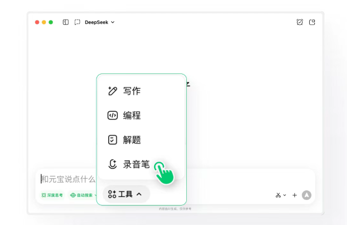 Пользователи могут быстро запустить диктофон в компьютерной версии Yuanbao двумя способами: