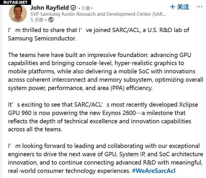 В своём заявлении Рейдфельд выразил надежду на сотрудничество с командой Samsung для продвижения следующей волны инноваций в области графических процессоров и архитектур «система на кристалле».