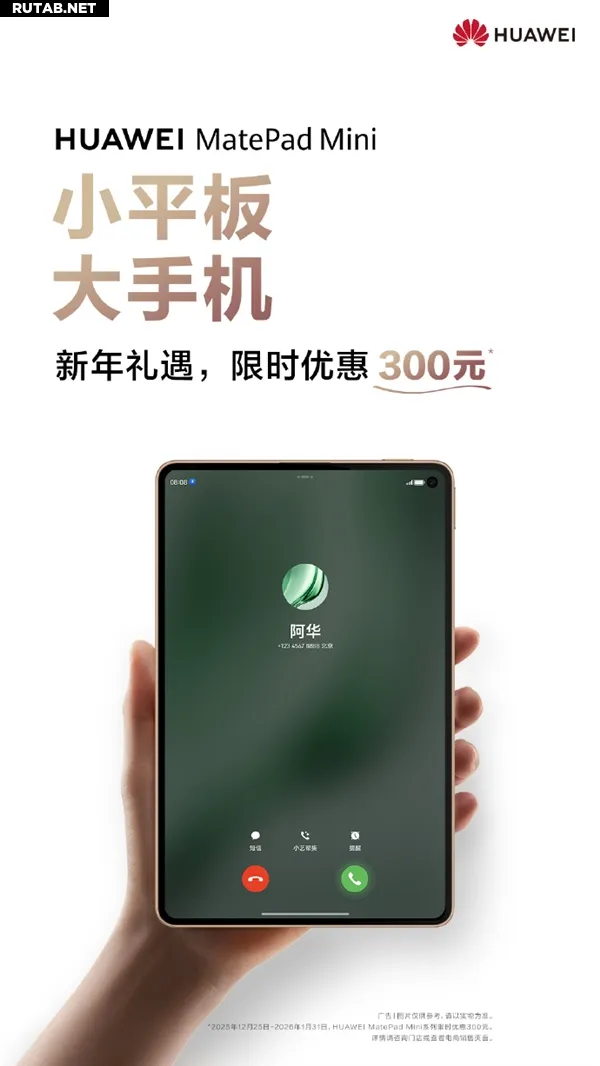 Huawei объявила о новогодней акции на планшет Huawei MatePad Mini, в рамках которой в течение ограниченного времени действует скидка в размере 300 юаней.