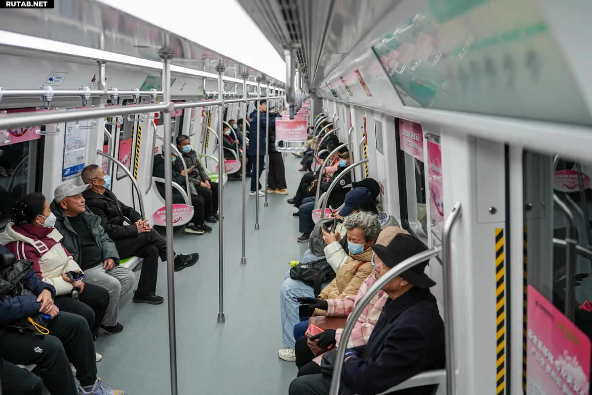 Пассажиры в поезде линии 4 Цзинаньского метрополитена, 27 декабря 2025 года. [Фото/Xinhua]