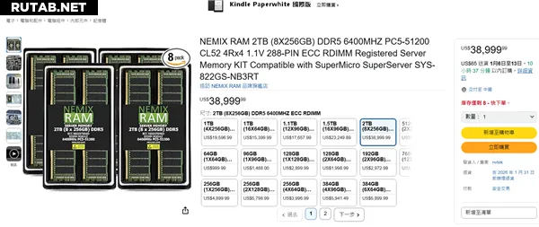 При этом самая дорогая модель оперативной памяти Nemix на Amazon — это комплект на 2 ТБ (8 модулей по 256 ГБ) по цене 38 999,99 долларов, что эквивалентно чуть более 270 000 юаней.