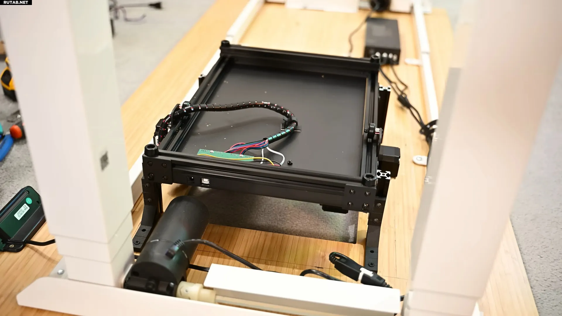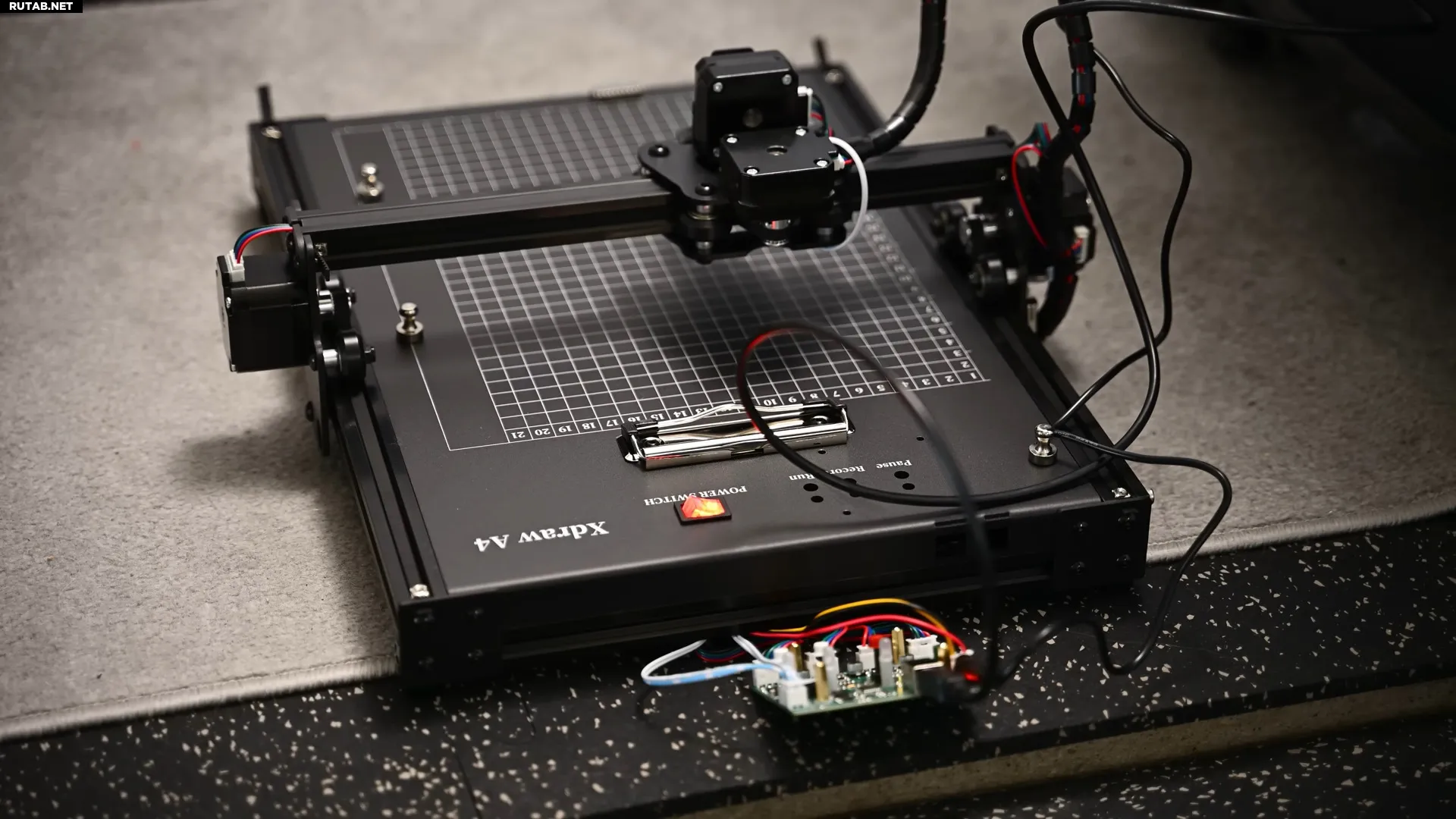 Он перебрал несколько вариантов перемещения, прежде чем остановился на использовании портала и контроллера от чертёжного станка Xdraw A4 для физического движения коврика. К счастью, этот выбор всё ещё соответствовал его более ранним решениям по вырезу в столе и выбору коврика.
