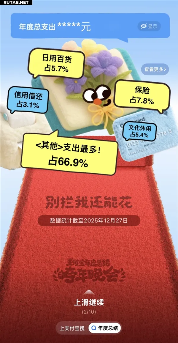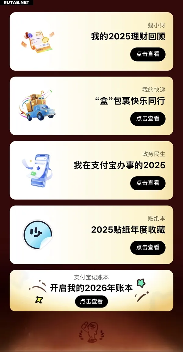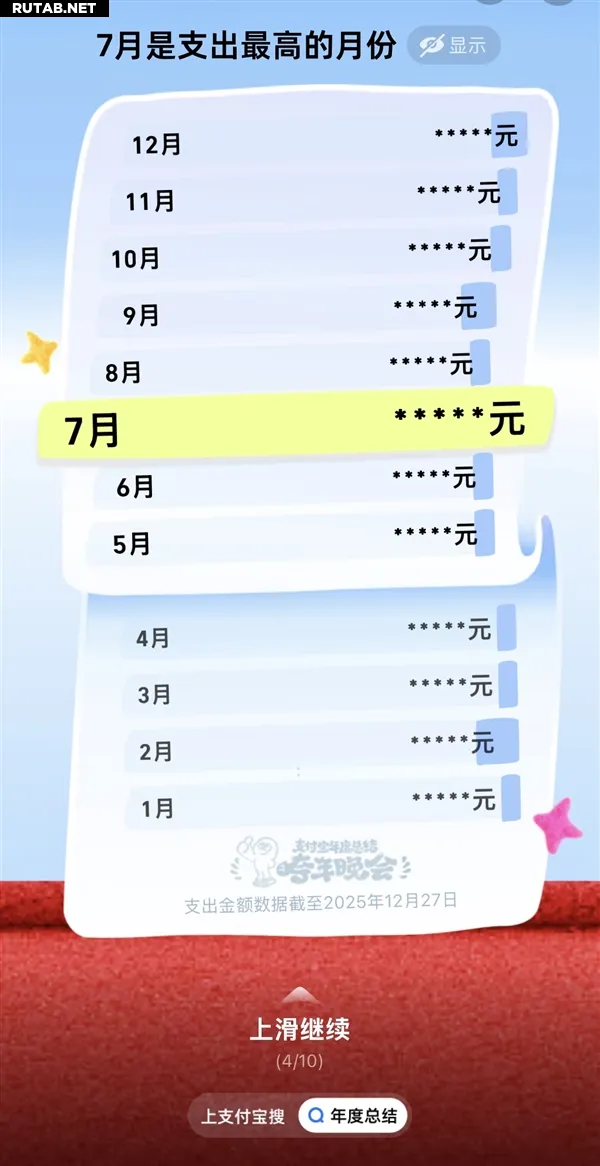 По мере того как 2025 год подходит к концу, в популярном китайском сервисе Alipay (支付宝) стал доступен тематический годовой отчёт «Новогодний вечер». Чтобы его посмотреть, достаточно ввести в поиске внутри приложения «年度账单» (годовой отчёт).
