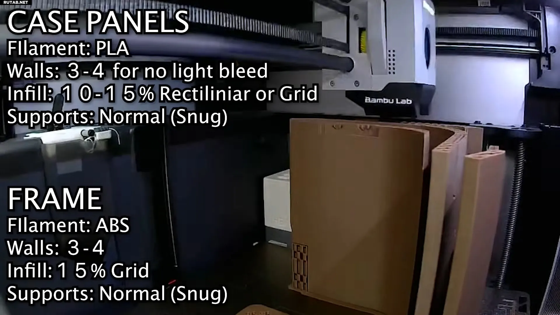 Для печати всех деталей использовался 3D-принтер Bambu Lab A1. Панели корпуса были напечатаны из PLA и крепятся на магнитах для быстрого доступа к внутренностям, а каркас — из термостойкого ABS. В процессе сборки также потребовалось напечатать переходник для установки компактного блока питания формата SFX, который необходим при использовании полноразмерной материнской платы ATX.