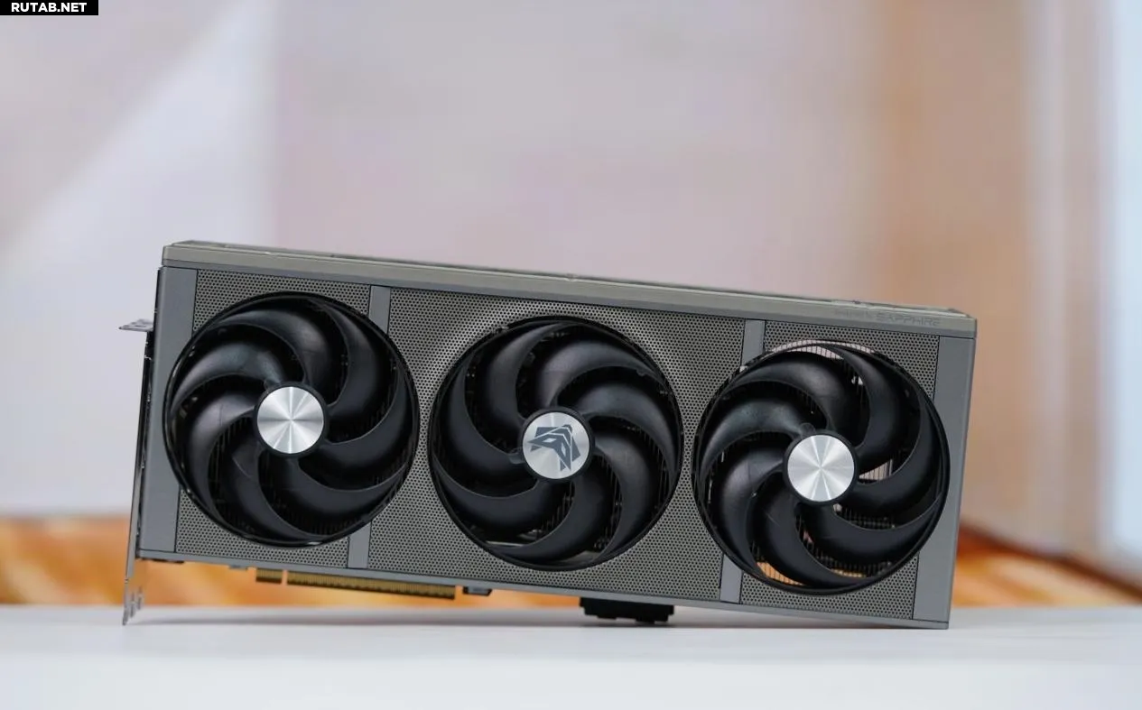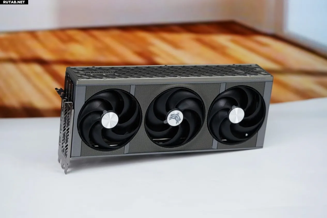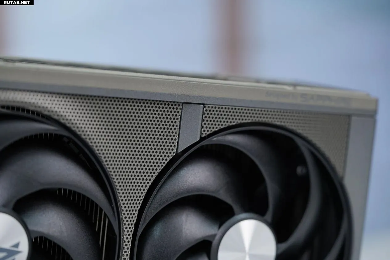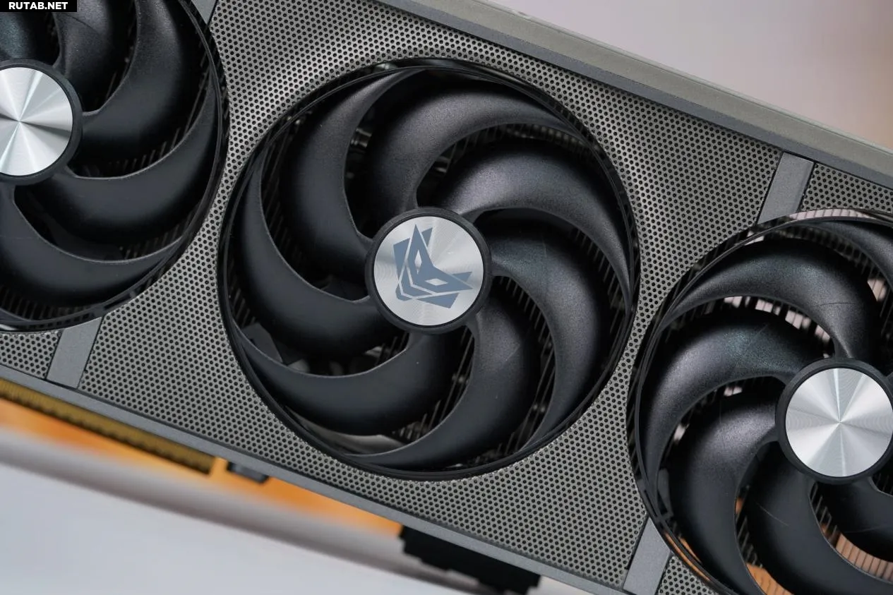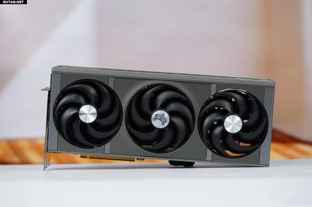 Видеокарта Sapphire NITRO+ RX 9070 XT использует трёхвентиляторную систему охлаждения с реверсивным вращением. Корпус кулера выполнен из металла в серо-металлическом и титаново-золотистом цветах, а общее качество сборки выглядит очень солидным.