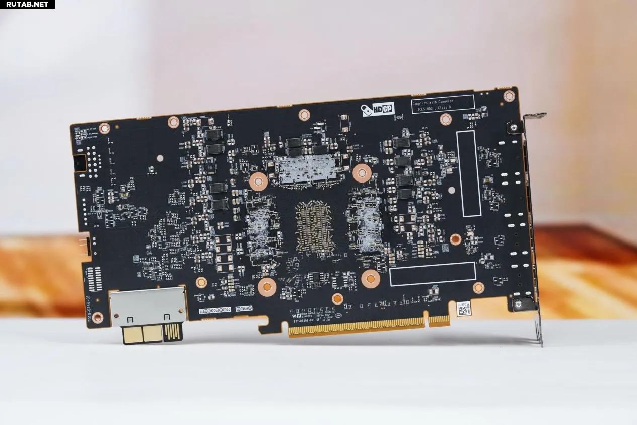 Разъём питания 12V-2x6 расположен в торце печатной платы, там же находится отдельный разъём для ARGB-подсветки. Такое расположение позволяет реализовать заднюю (back-connect) разводку кабелей, что делает внутреннее пространство системного блока более аккуратным.