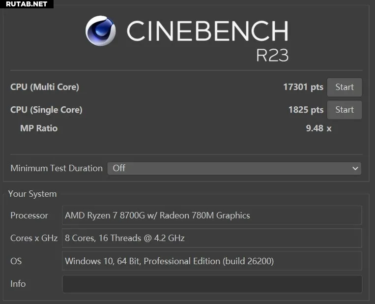 В синтетических тестах процессоры показали разные результаты. В CPU-Z i5-14400 лидировал в одноядерном тесте (688,2 балла против 661,5), но уступил в многоядерном (6396,6 против 6880,9). В Cinebench R23 разница в одноядерной производительности была минимальной, но в многоядерном тесте Ryzen 7 8700G снова оказался быстрее (17301 балл против 14295). Аналогичная картина наблюдалась в Geekbench 6, где AMD-процессор набрал 2661/10264 балла против 2311/8995 у Intel.