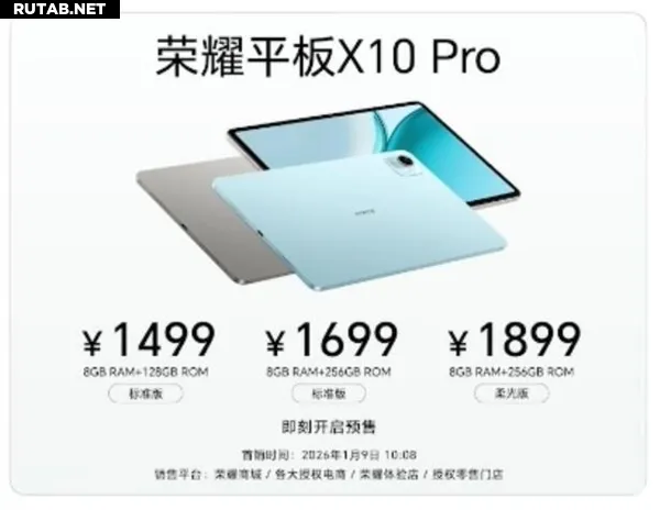 Сегодня, 5 января, компания Honor представила новый планшет X10 Pro. Модель с 8 ГБ ОЗУ и 128 ГБ памяти стоит 1499 юаней, версия 8/256 ГБ — 1699 юаней, а вариант Soft Light с 8/256 ГБ — 1899 юаней.
