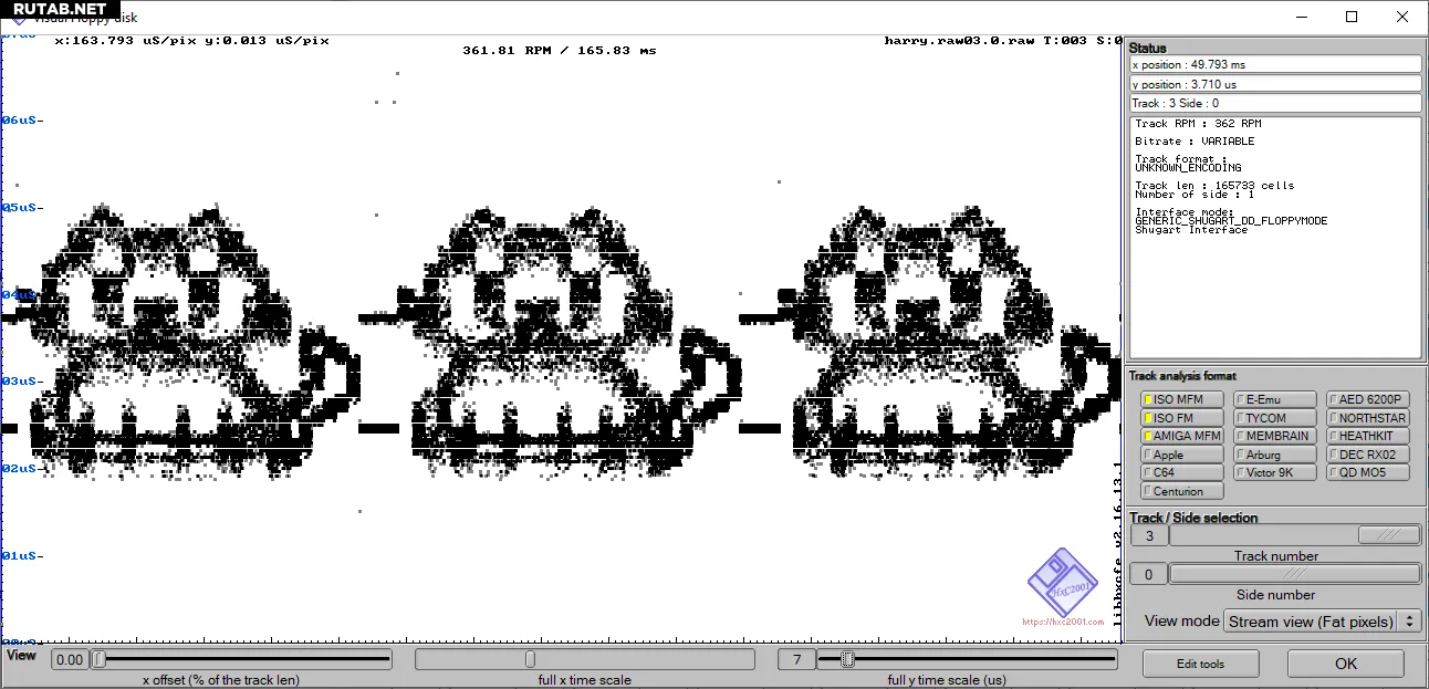 Процесс основан на принципах работы дискеты. Данные на ней хранятся в виде микроскопических магнитных переходов (флюкс-переходов). Временная диаграмма дорожки — это визуальное отображение интервалов между этими импульсами при вращении диска. Обычно она используется для диагностики ошибок, но pbm2track намеренно искажает тайминг импульсов, чтобы контролировать появление точек на графике, создавая таким образом картинку.