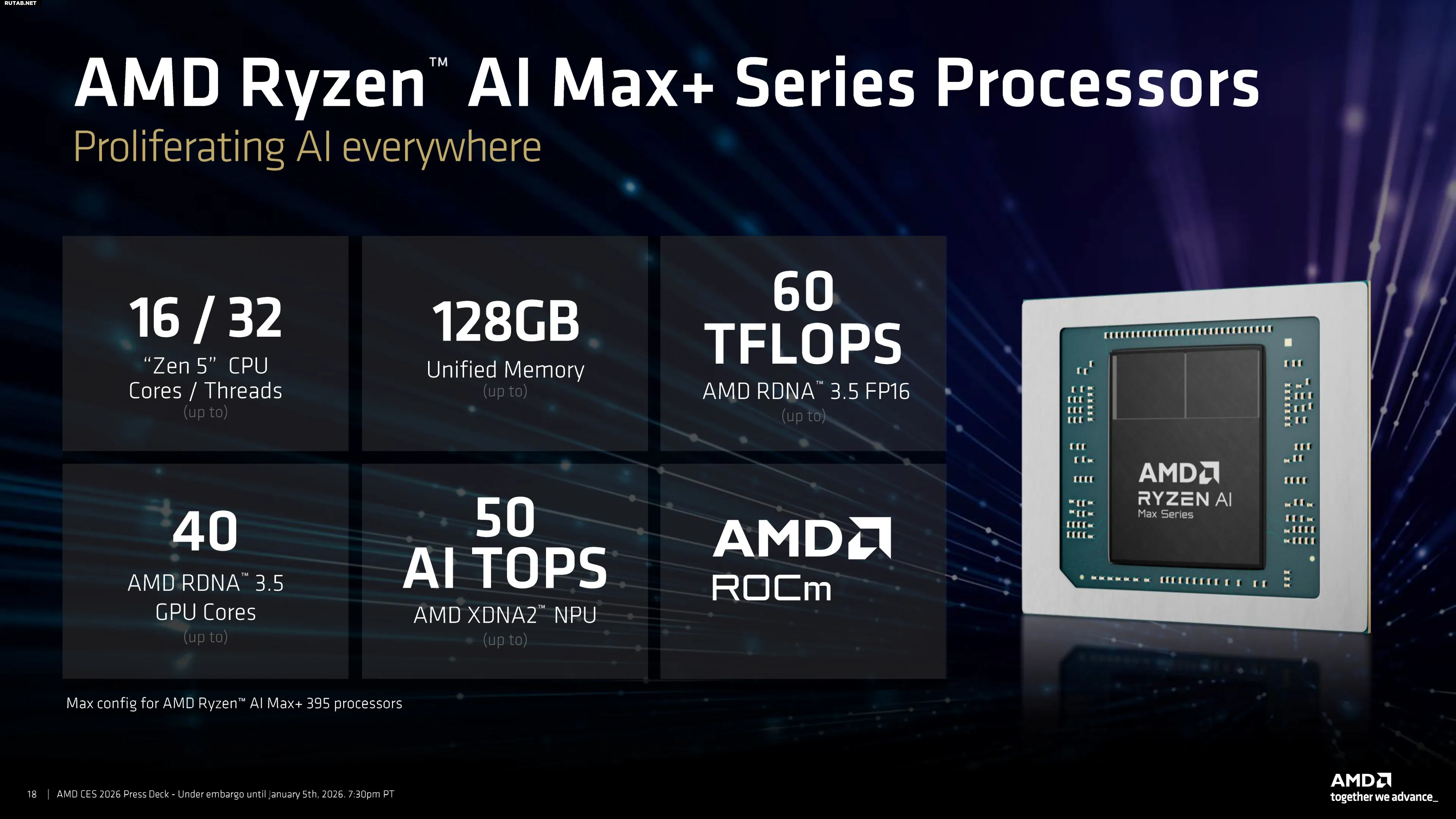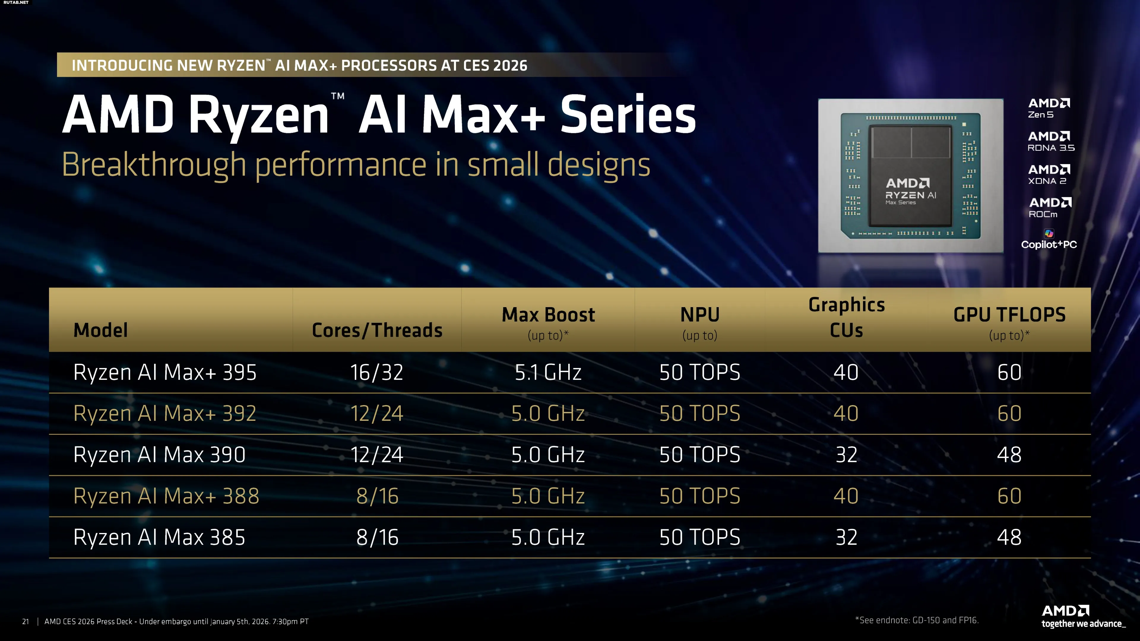 До сих пор полный набор из 40 CU был только у очень дорогого Ryzen AI Max+ 395. Теперь к нему присоединились две новые модели: Max+ 392 и Max+ 388. Первый оснащён двумя CCD, что даёт 12 ядер и 24 потока, а второй использует один CCD с 8 ядрами и 16 потоками.