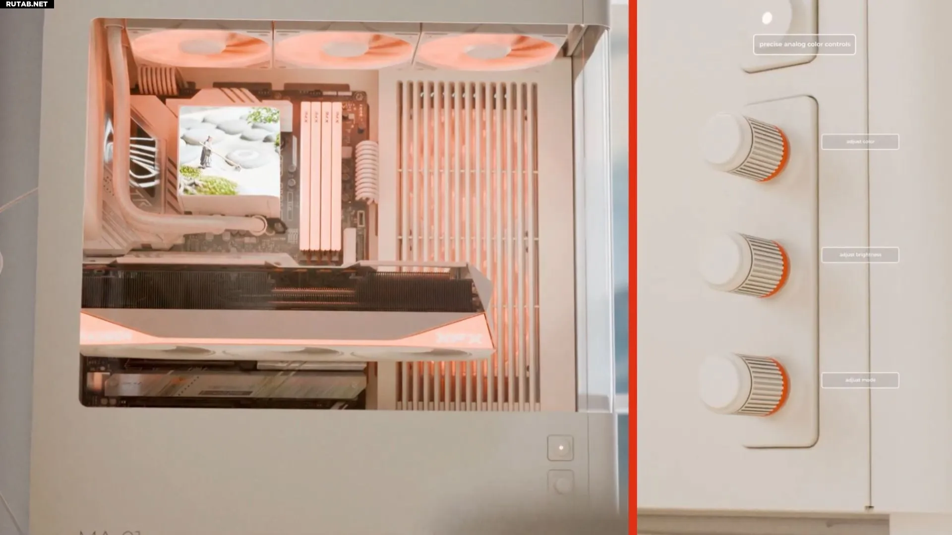 Эти регуляторы предназначены исключительно для управления RGB-подсветкой внутри корпуса. Верхняя ручка отвечает за выбор цвета, средняя — за яркость, а нижняя — за режим работы (например, статичный, пульсирующий или переливающийся). По словам производителя, управление работает без какого-либо программного обеспечения и предоставляет доступ ко «всему спектру из 16,7 миллионов цветов».